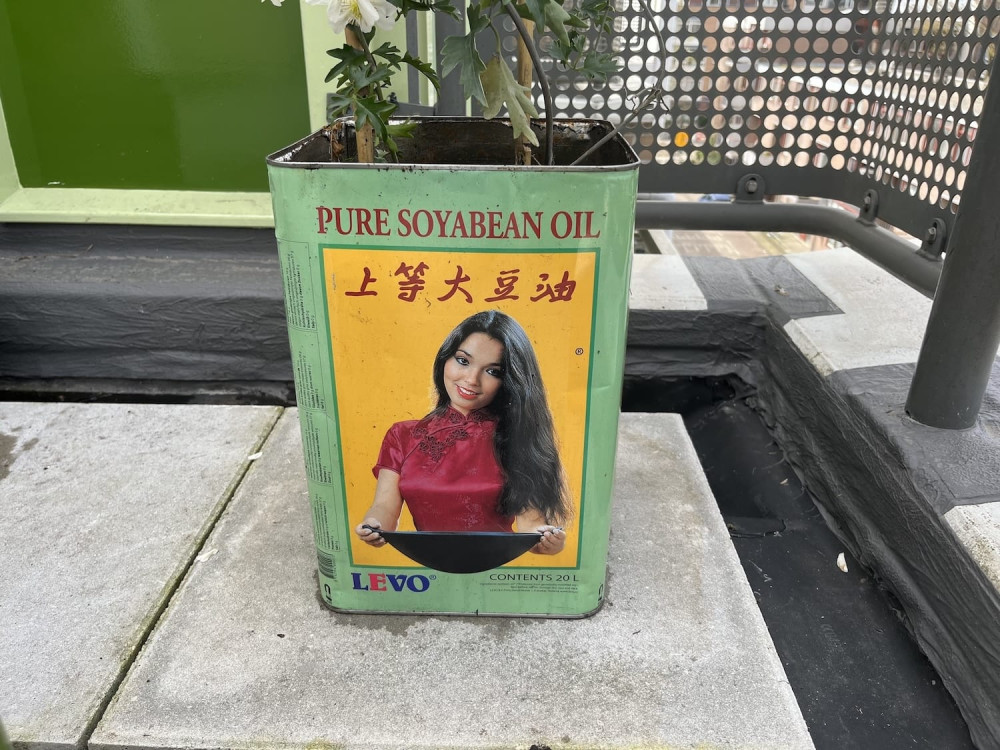Ergens op een markt, achter een restaurant of bij een groothandel staan ze soms te wachten op een tweede leven: grote metalen kookolievaten van 20 liter. Weggegooid, maar eigenlijk veel te mooi om weg te gooien. De kleurrijke etiketten, de stevige constructie, het formaat — het zijn kant-en-klare plantenbakken die alleen nog even bewerkt moeten worden.