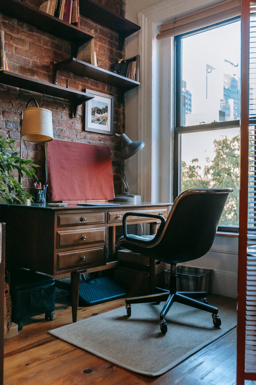 Creëer je ideale werkplek in een ruimte die zowel functioneel als esthetisch is. Omring jezelf met boeken, kunst en een mooi uitzicht voor dagelijkse inspiratie. Een vleugje vintage met hout en leer voegt warmte toe aan je werkplek. Hoe ziet jouw droomkantoor eruit?